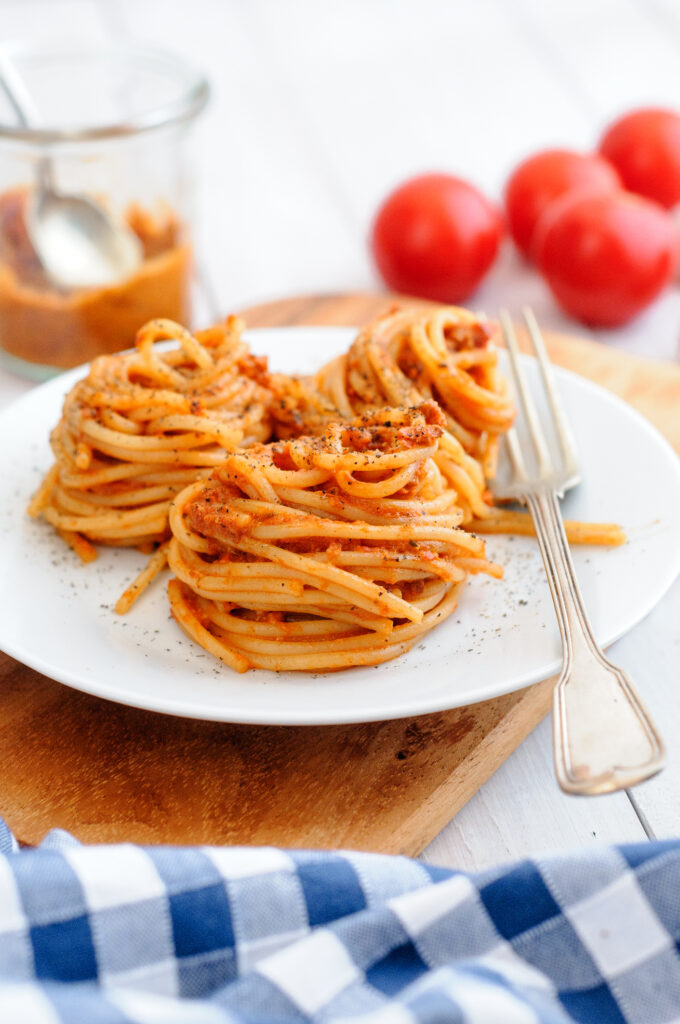 [wpurp-searchable-recipe]ESPAGUETE DE QUINOA COM MOLHO DE TOMATE SECO – – espaguete de quinoa, Molho: tomate, tomate seco desidratado (picadinho), tâmaras medjool (sem caroço), shoyu sem glutamato, vinagre de maçã, azeite, dente de alho (bem picados), nuts ((opcional) – amêndoas, pistache, castanhas), Hidrate o tomate seco com um pouco de água, faça o mesmo com as tâmaras e reserve.