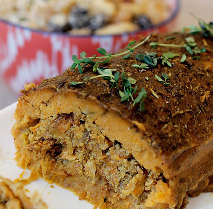 [wpurp-searchable-recipe]“Lombo” Defumado recheado com Farofa de Castanhas – – Massa: tofu defumado, lentilha (de molho por 12h), cebola (picadinha), alho (picadinho), manteiga ghee (para refogar, ou azeite), polvilho doce, Temperos: tomilho fresco, alecrim fresco (picado), lemon e pepper, páprica defumada, sal, pimenta do reino, fumaça líquida, Marinada: cebola, limão, melado de cana, shoyu sem glutamato, missô (claro, orgânico), alho, mostarda dijon, sal de especiarias, lemon e pepper, alecrim fresco, tomilho, orégano, vinho branco, Marinada: Bata todos os ingredientes e reserve;