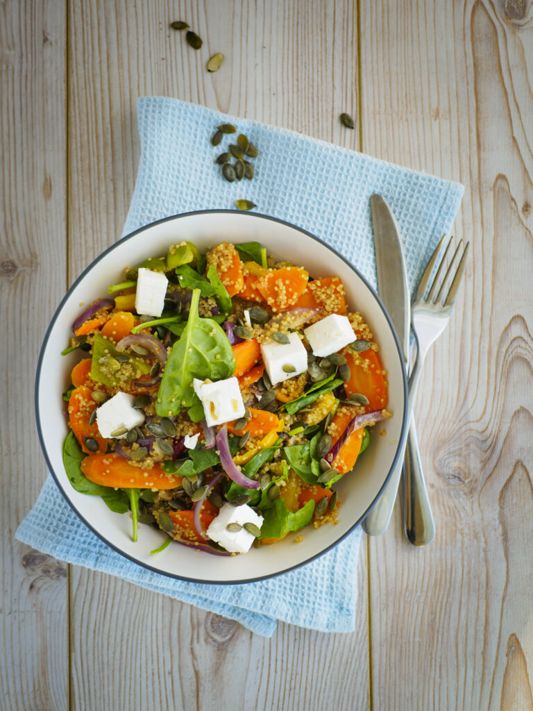 [wpurp-searchable-recipe]Salada de Abóbora Assada com Chévre e Folhas – – abóbora japonesa, sal de especiarias, azeite, folhas verdes, queijo chevre (vegano ou não), noz pecan (ou pinoles), Deixe a abóbora em temperatura ambiente e tempero com azeite, deixe descansar por pelo menos 30min a 1h.