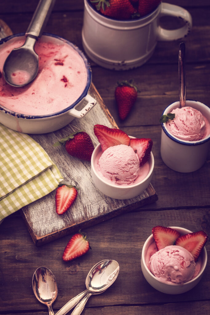 ; Incorpore os morangos cortados tampe e leve ao congelador por pelo menos 4h.